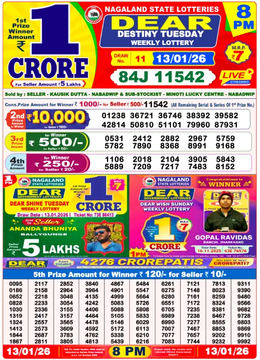 Dear Lottery Sambad 8:00 PM 13.1.2026